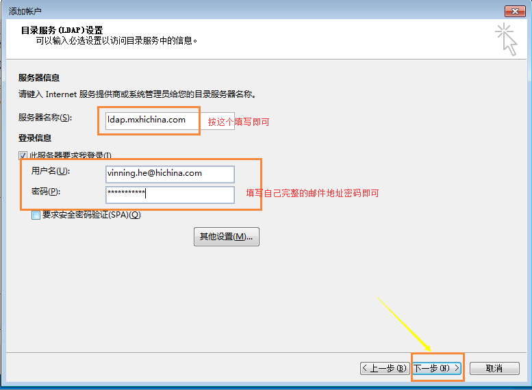 Ldap服务器:ldap.mxhichina.com;端口636;使用SSL链接