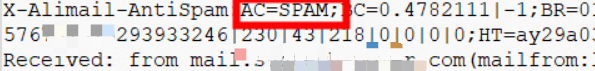 2、”AC=SPAM“ 代表反垃圾系统已经判决为垃圾邮件,建议员工将反垃圾自定义设置为“高”,就会拦截并投递至垃圾箱。