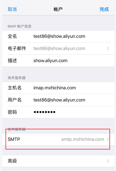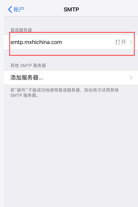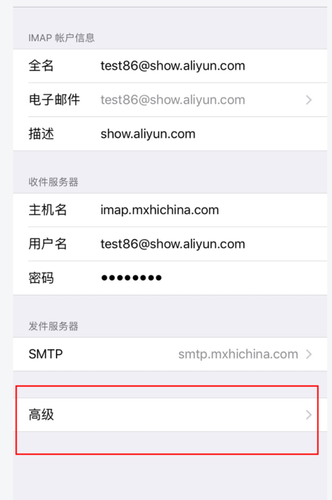 选择imap服务,收件服务器填写imap.mxhichina.com,发件服务器填写smtp.mxhichina.com。
